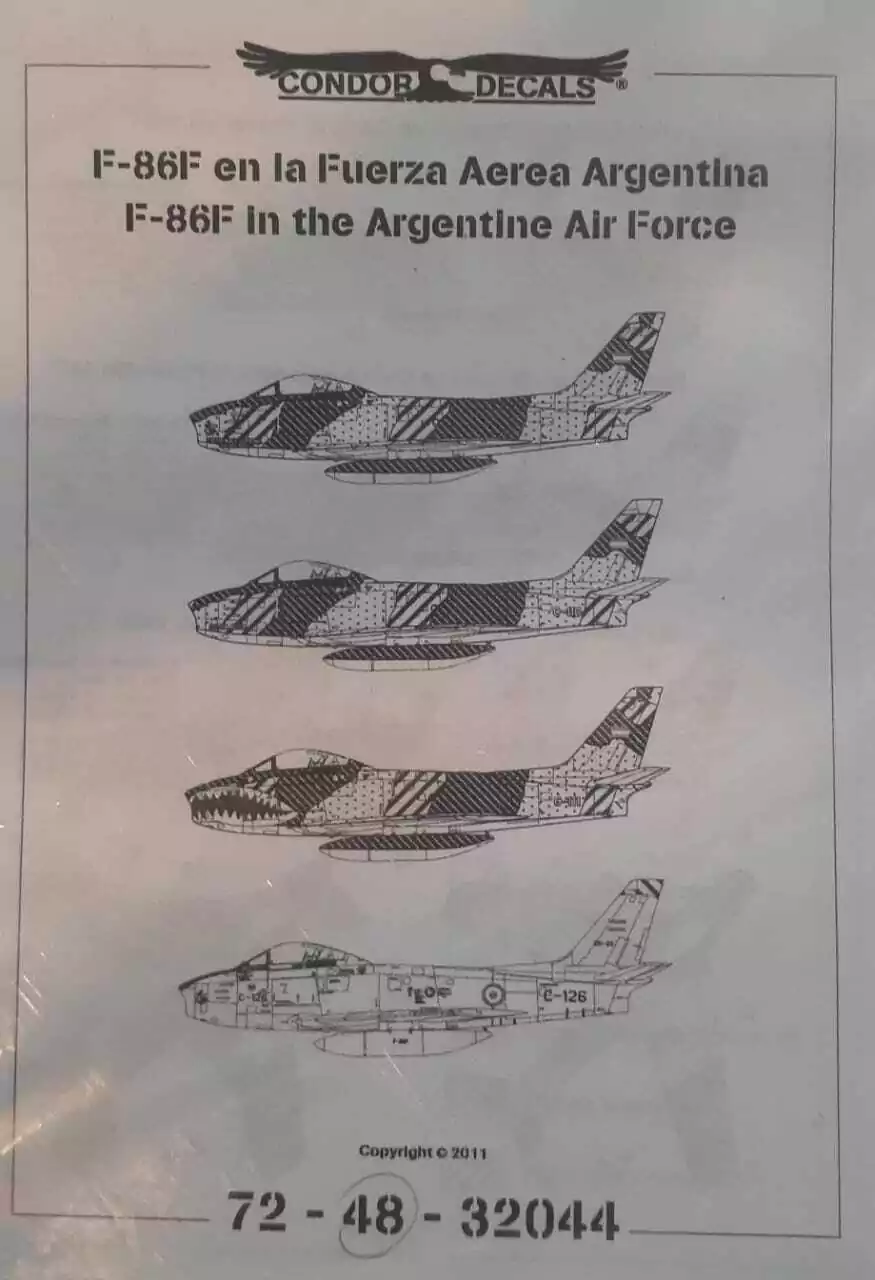 Condor Decals 48044 1/48 F-86 F Sabre Fuerza Aerea Argentina