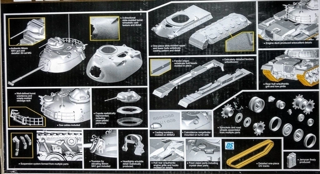 Caracteristicas especiales: Suspension detallada Exterior detallado Orugas DS, el increible y practico vinilo de DML Todas las escotillas abiertas o cerradas Excelente reproducion de las piezas mas finas Fotograbados Cupula transparente Cable de arrastre en alambre Mas sencillo de construir que otros modelos de la marca