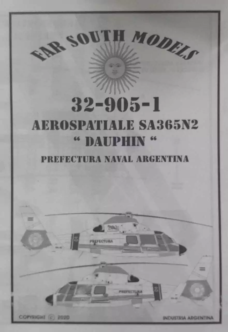 Plancha de calcas en escala 1/32 32-905-1 Aerospatiale Sa365N2 Dauphin Prefectura Naval Argentina