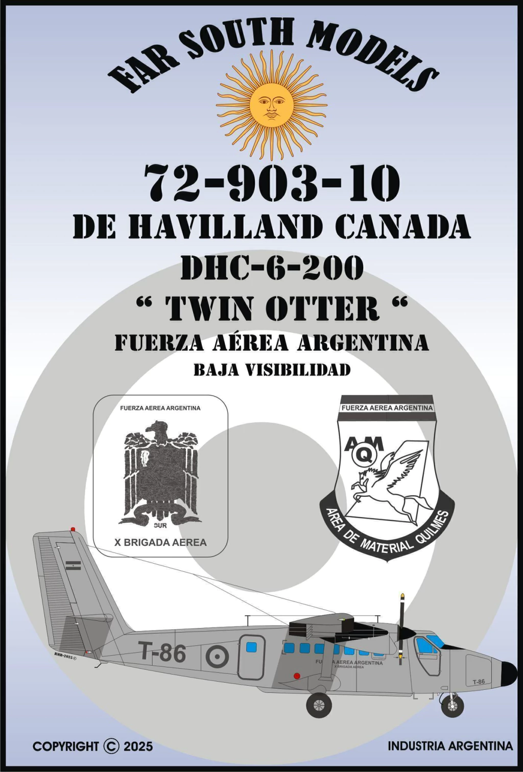 Plancha de calcas en escala 1/72 De Havilland Canada Dhc-6-200 ¨Twin Otter¨ - Fuerza Aérea Argentina