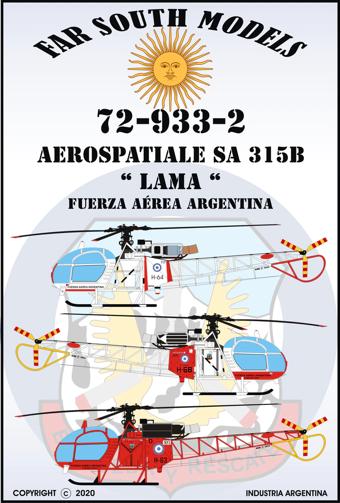 Plancha de calcas en escala 1/72 72-933-2 Aerospatiale Sa 315B ¨Lama¨