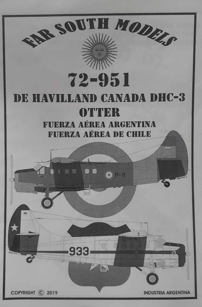 Plancha de calcas en escala 1/7272-951 De Havilland Canada Dhc-3 Otter Fuerza Aerea Argentina - Fuerza Aerea de Chile