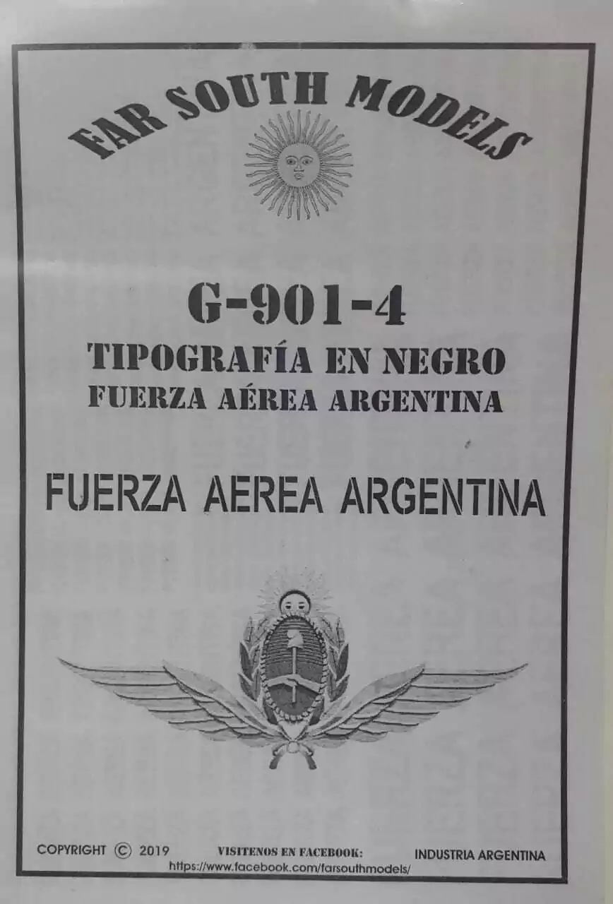 Plancha de calca con opciones de decoracion referida a los aviones de la FUERZA AÉREA ARGENTINA - TIPOGRAFIA EN NEGRO G-901-4