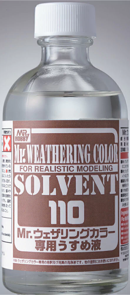 Mr. Weathering Color Thinner es un producto de alta calidad, compatibles con las líneas Mr. Weathering Color y Mr. Weathering Color Filter Liquid. Recomendado para limpiar los remanentes de pintura al aplicar Mr. Weathering Color, asi como para ajustar su viscosidad y densidad (de ser requerido), y paletas o utensilios luego de uso. Puede ser aplicado directamente sobre superficies pintadas con Acrílicos a base de Agua (Mr. Aqueous Hobby Color) sin miedo a perjudicar la durabilidad o el acabado de la pintura.