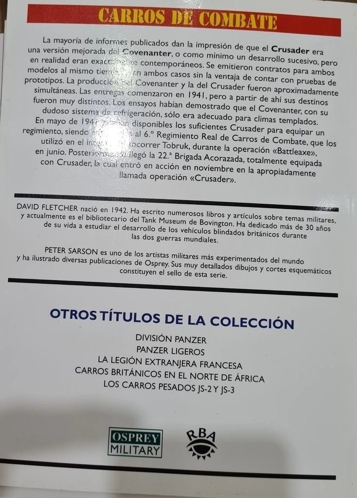 Libro de Osprey 30 ,El Carro de Crucero Crusader - Carros de Combate. 48 páginas Fotos en blanco y negro Perfiles a todo color Técnicas y desarrollo