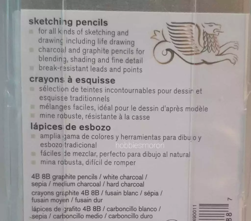 Contiene: lápices de grafito, 4B y 8B, carboncillo, carboncillo blanco, sepia y pierre noire